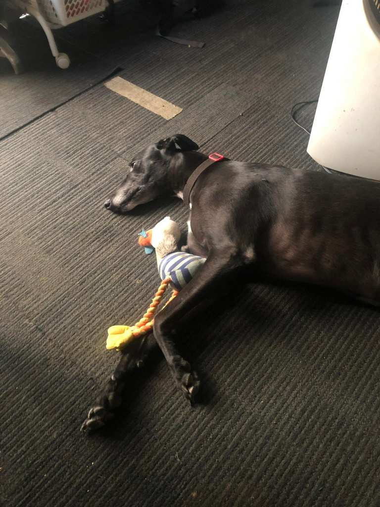 A relaxed snoozy dog that will share a couch and snacks while you watch TV, cuddle with you at night and follow you everywhere like a shadow. Someone to lay quietly while you potter around in your garden.